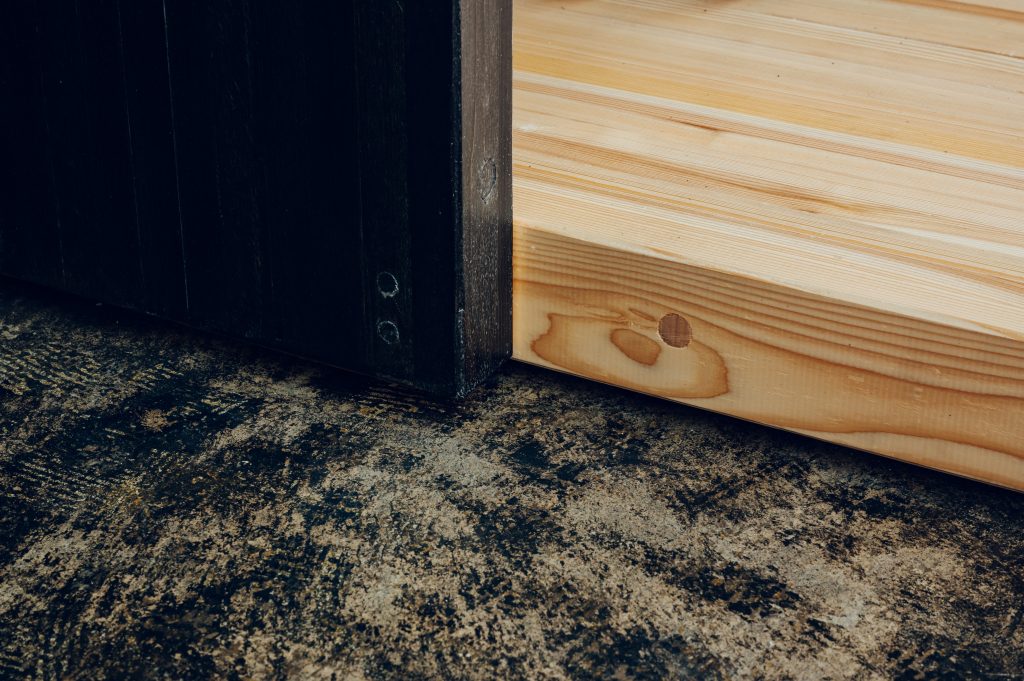 - PODの無垢材パネルには、通常は好まれない丸身材を使用することで、ラフな質感を魅力として活かし、肌触りや香りも体感