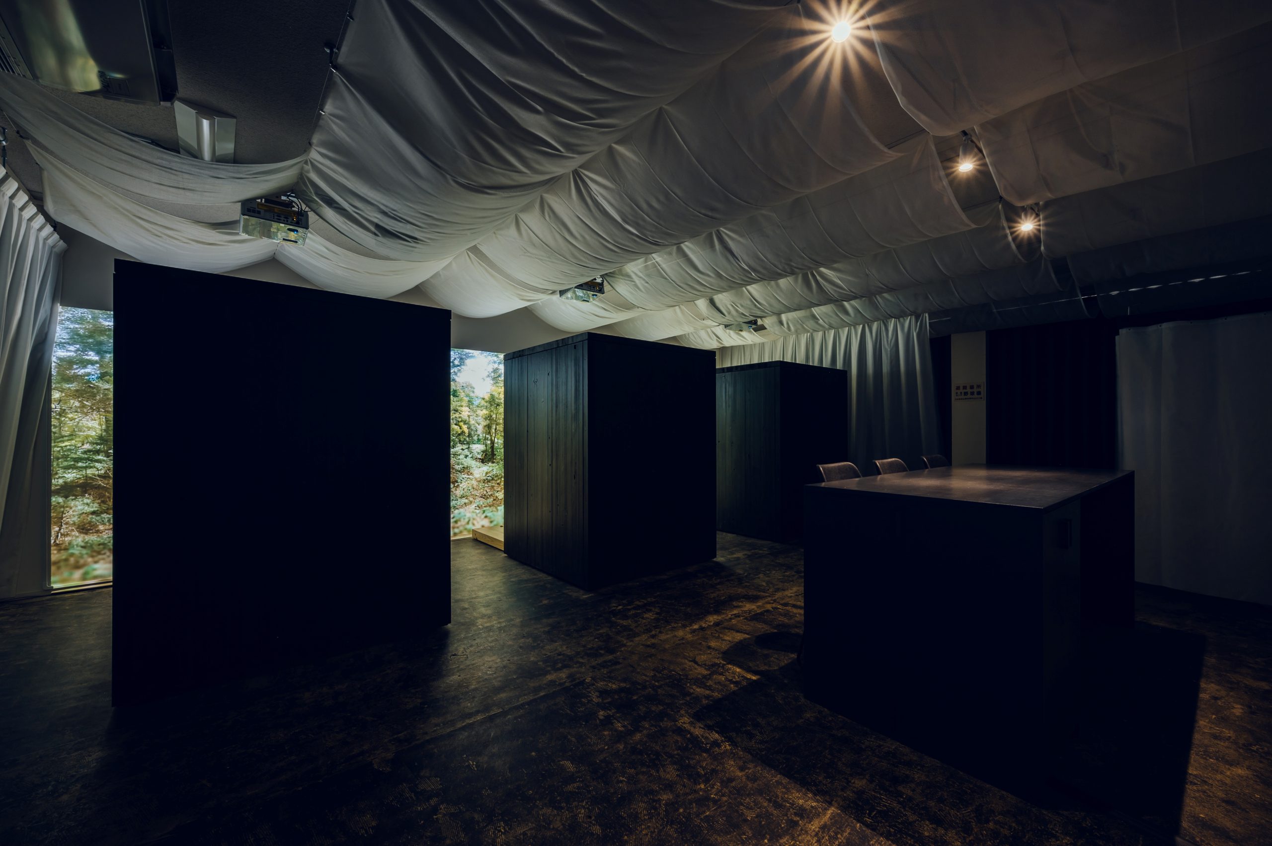 - カーテンや天幕で空間全体を構成し、既存の壁や設備を大きく変更せずに実現
