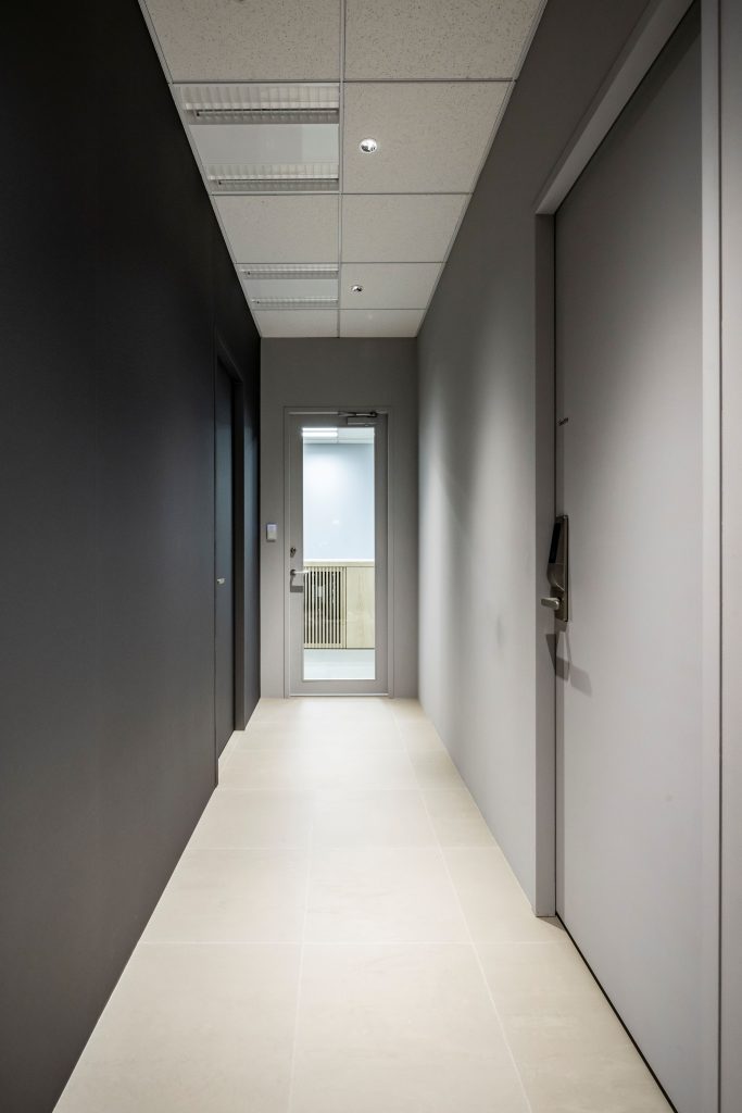 - 来客者が執務エリアを通らず直接アクセスできる大小2室の会議室計画、セキュリティと落ち着いた執務環境を確保した